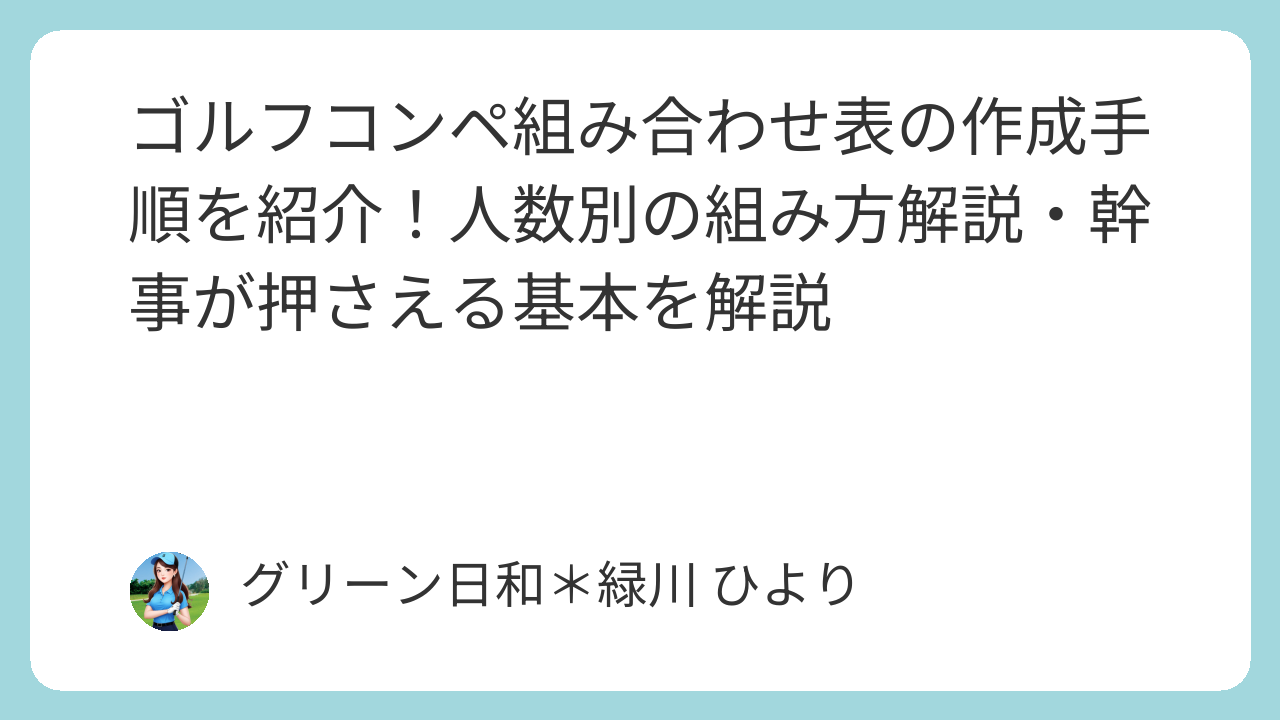 この記事では、ゴルフコンペの組み合わせ表を作る前に決めること、人数別の組み方や注意点まで分かりやすく解説します。